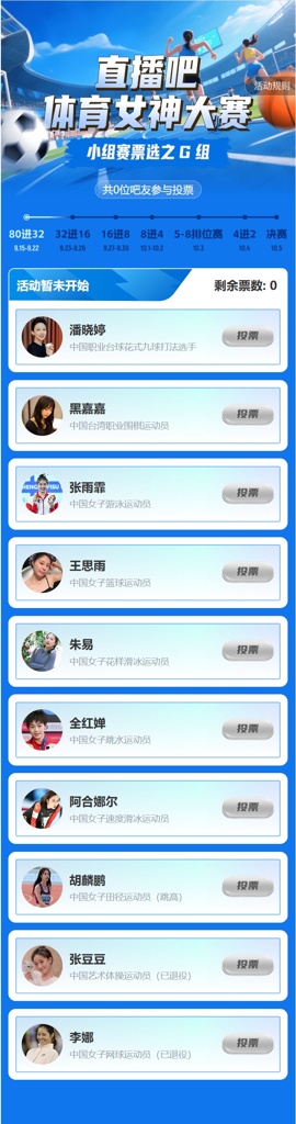 为你支持的她投票,每组前四将晋级淘汰赛!